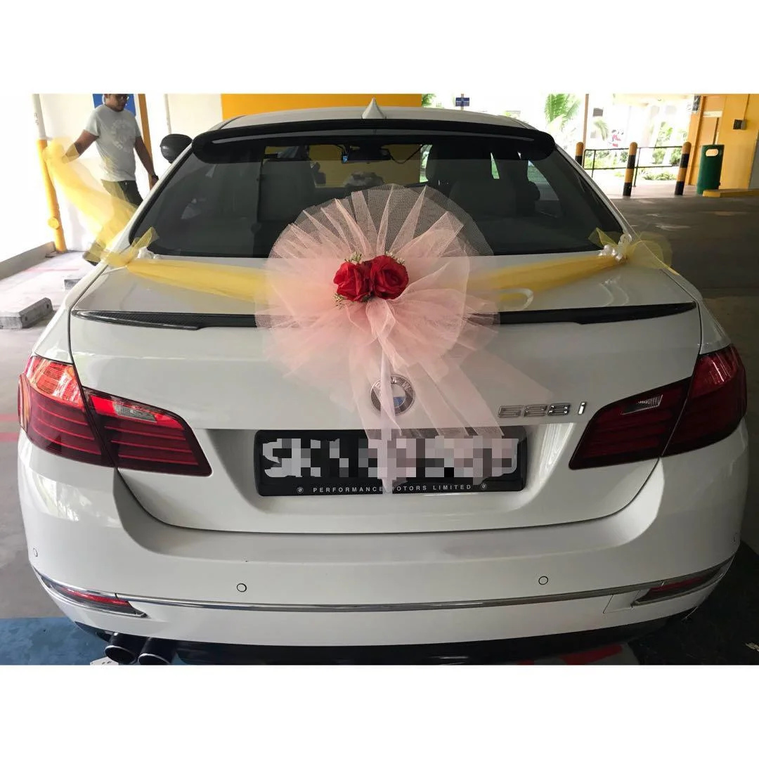 This decor style is also easy to install, and you can see that the flowers are much smaller than the ones in the previous decorations we showed. We haven’t seen too many wedding cars with this decor going around, but they can be pretty cheap if you’re just looking for a simple and fuss free wedding car decoration. You can find them on sites like Carousell, Shopee and qoo10.